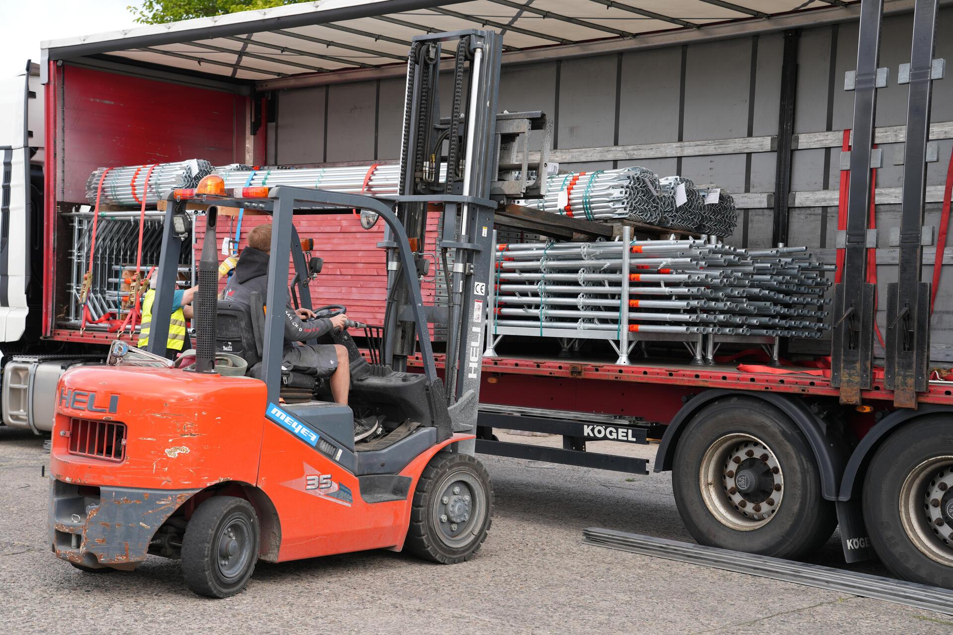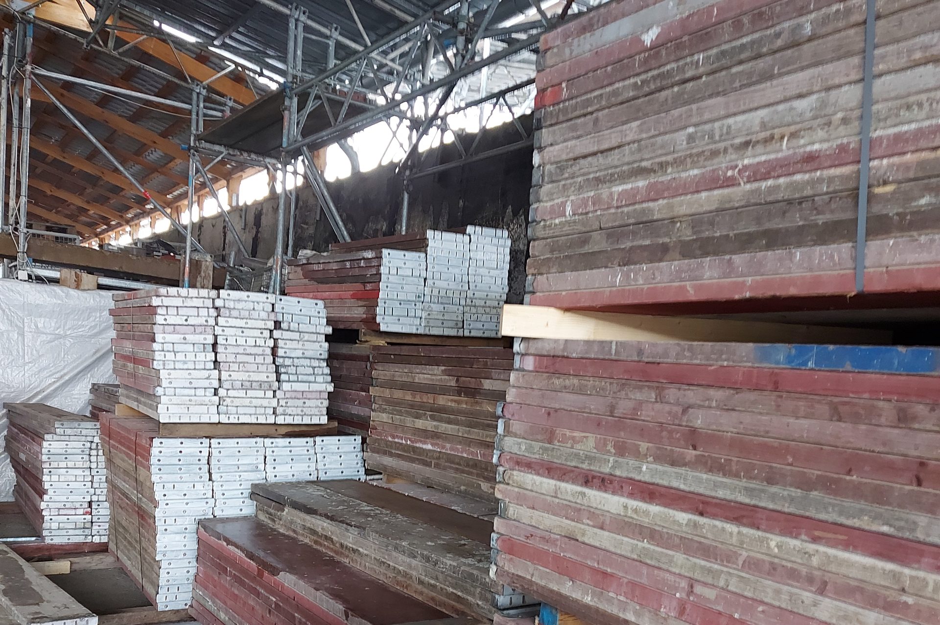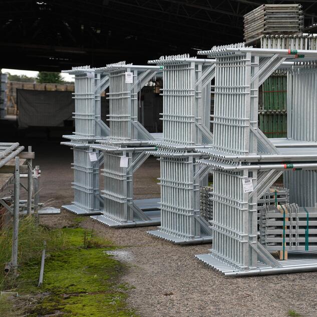 Wir haben ein gut sortiertes Lagersortiment an Gerüstbauteilen zur Vermietung.
